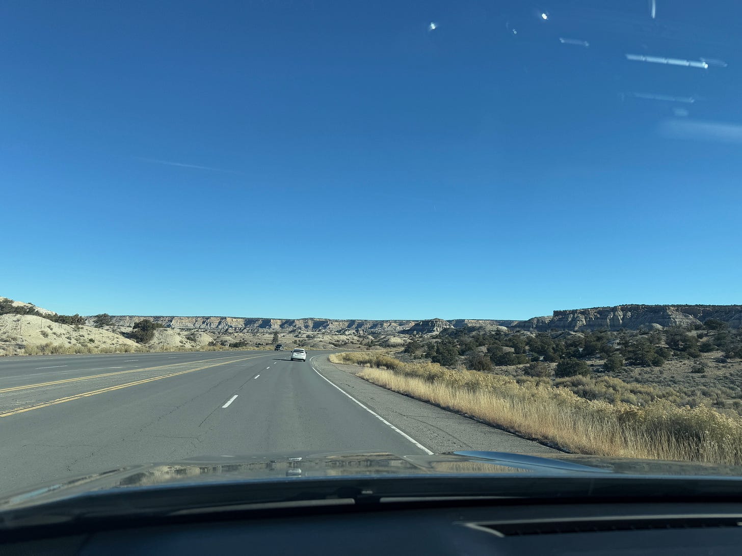 I wasn’t planning on taking any adventures in my last few weeks in the US, but there we were crossing the endless plains of west Texas, mostly me riding shotgun, my daughter driving. We drove four days, 1,813 miles, from Austin to Farmington, New Mexico and back again.