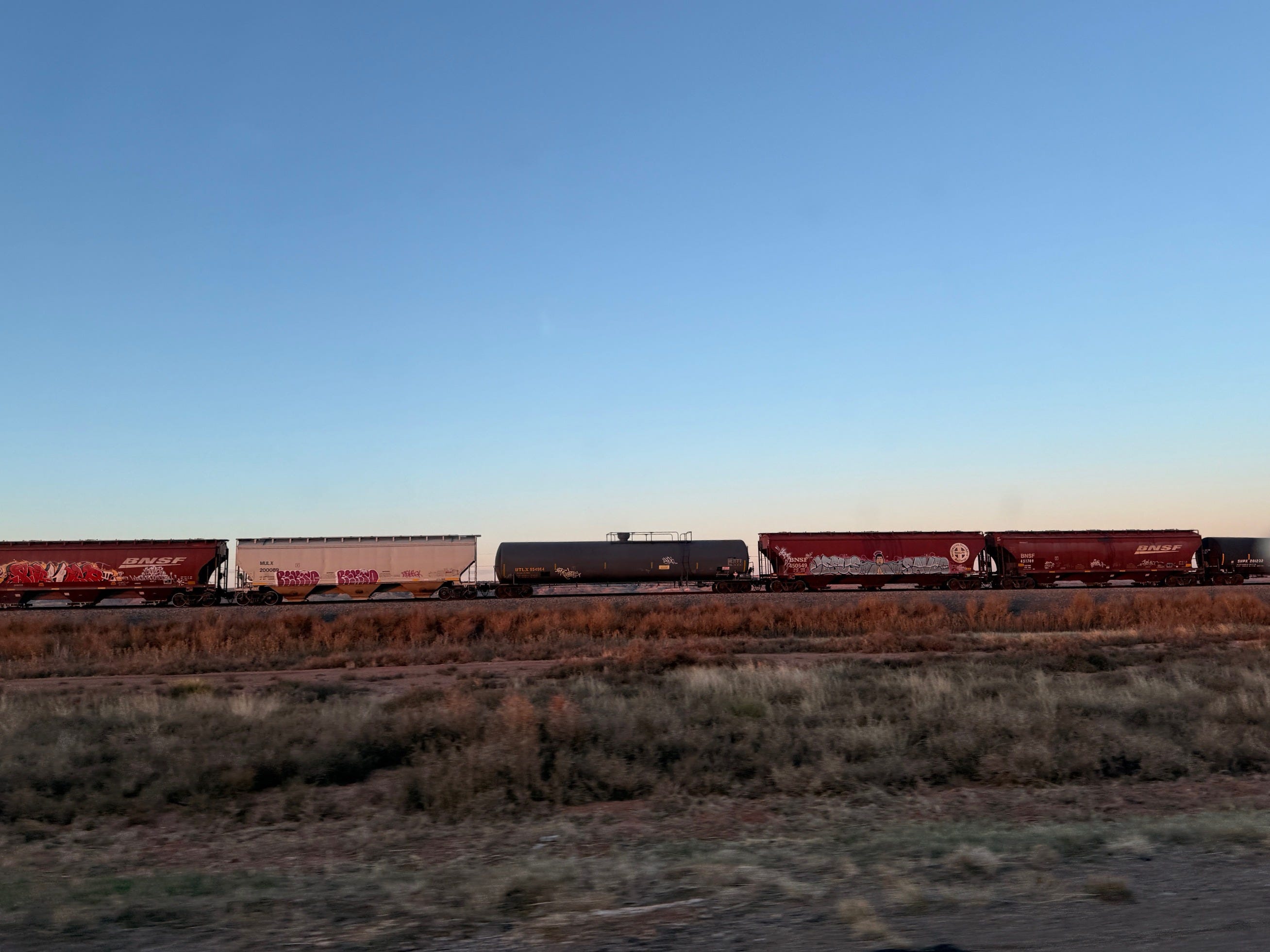 Train tracks run parallel to the road, so you often find yourself outrunning a long, winding freight train or listening to a far-away whistle or the clang clang clang of a crossing. There was a shocking amount of roadkill. There is actual tumbleweed dancing and bouncing down the road and puffy white cotton clinging to the weeds at the edges because it’s harvest time. Note—tumbleweed is actually Russian thistle, Salsola tragus, and an invasive species introduced in the late 1800s.