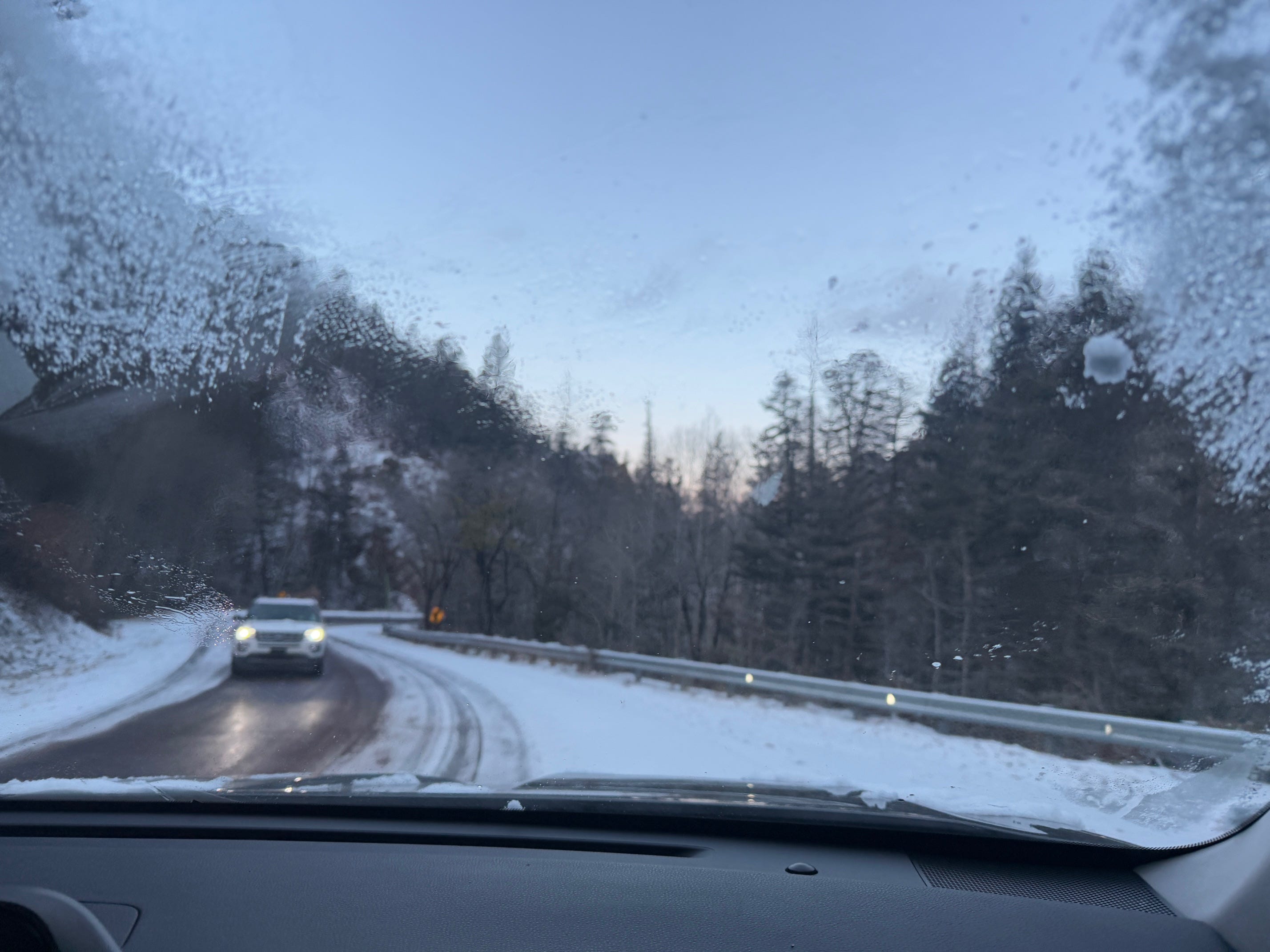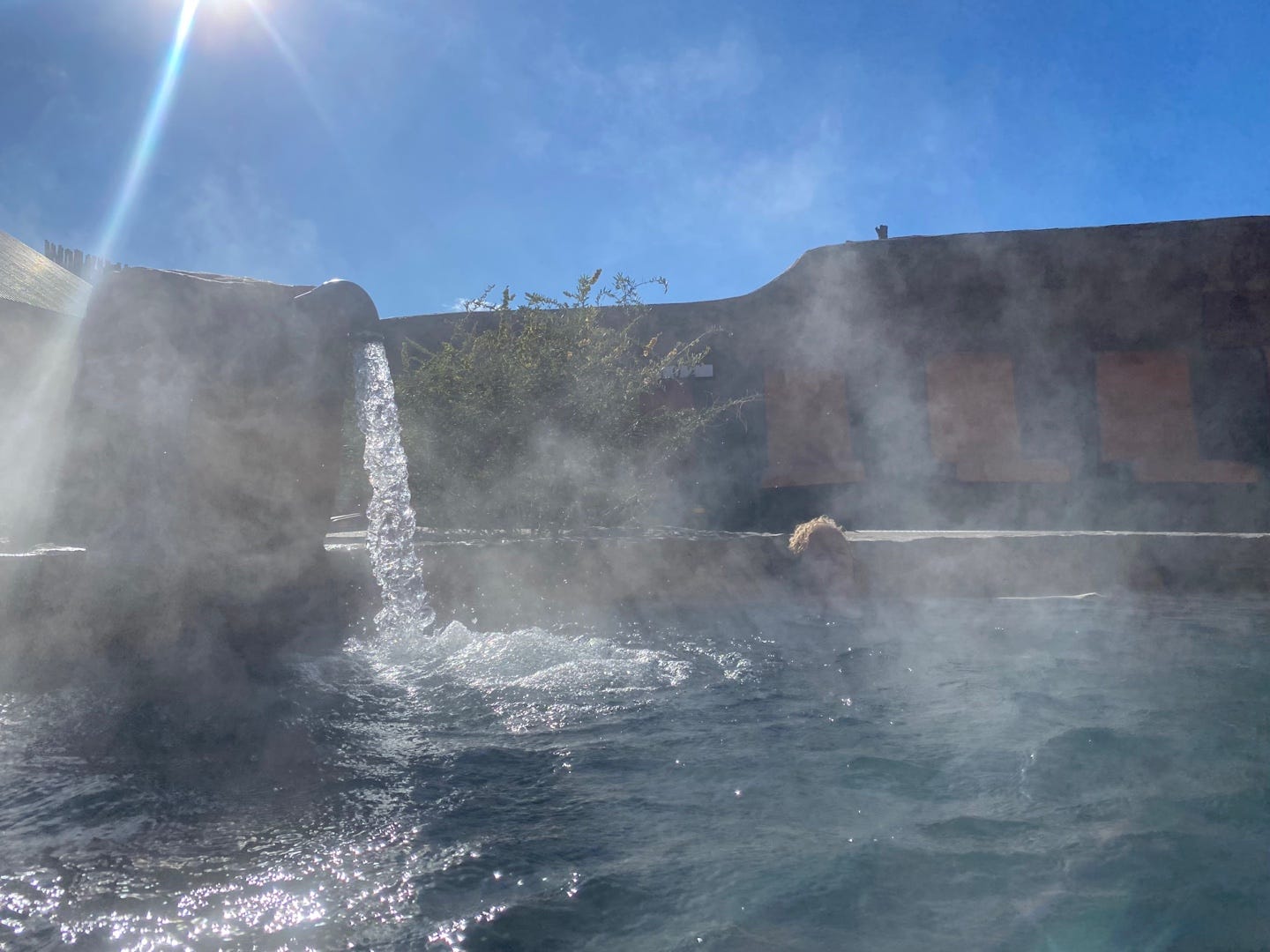 In New Mexico, on our second day we treated ourselves to a stop at Ojo Caliente Mineral Springs, which were a little pricey but we “earned” it by sleeping in the car the night before. The temperature dropped to about 25 that night and we awoke to a blanket of snow. A lovely surprise!